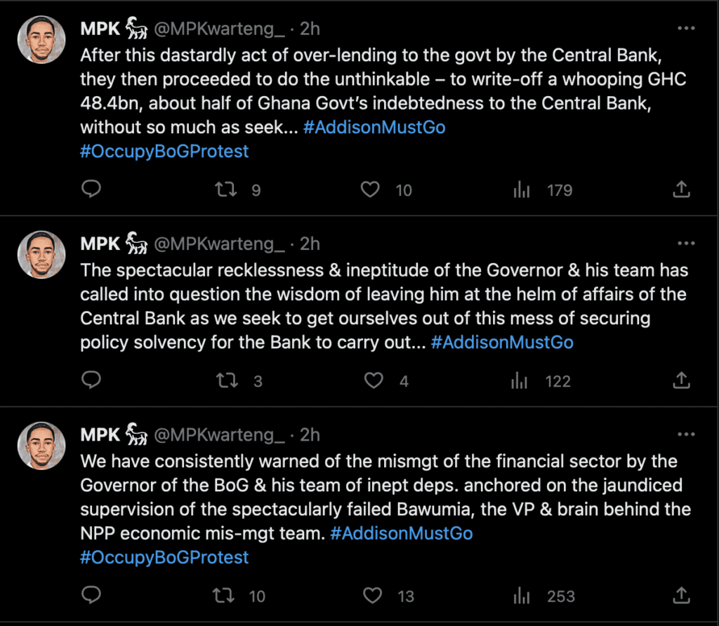 The BoG had to step in and absorb the remaining gap by exchanging its non-marketable government debt instruments for new bonds at half their value. This resulted in huge impairment losses of GH¢32.3 billion for the central bank.