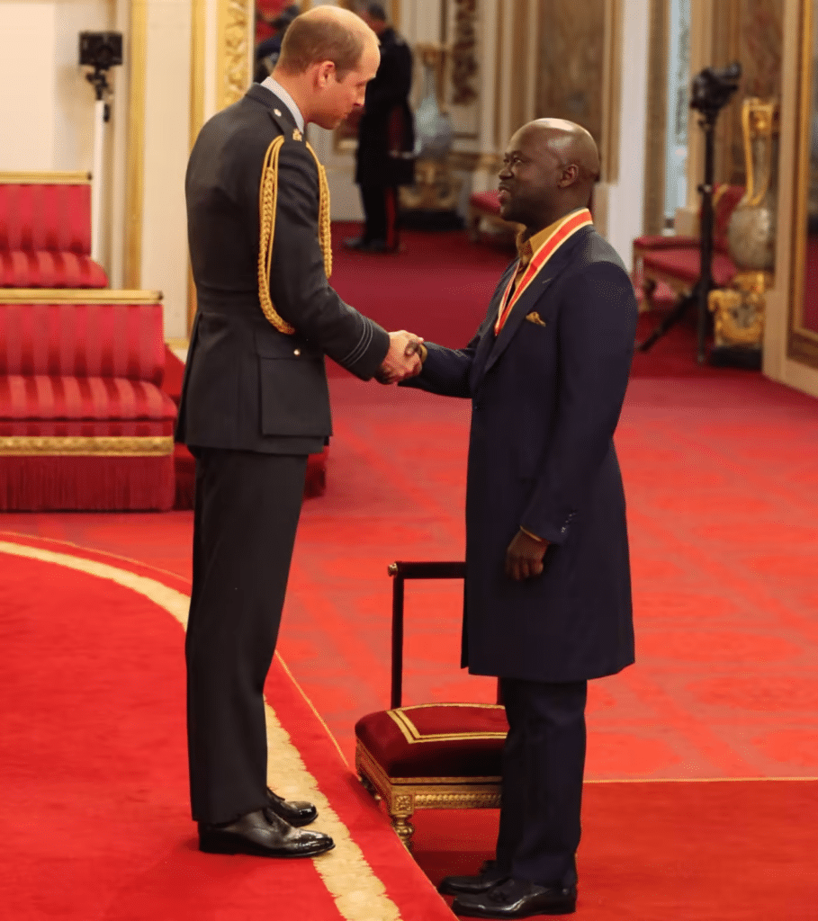 Prince William bestows knighthood upon David Adjaye at Buckingham Palace in 2017 on behalf of Queen Elizabeth II. (Source: Yui Mok/PA)