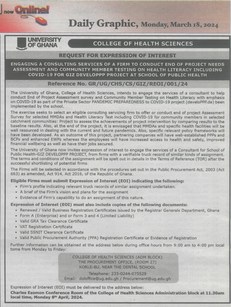 Any interested party can bid for either Lot 1 only, Lot 2 only, or all lots separately. Send your expression of interest in these services in the form of an official letter (via email) or email with the following attachments: