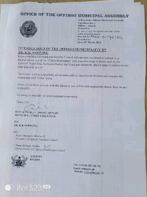 “I am writing to acknowledge receipt of your Letter No. OPS 140/1/24/235 dated 18th March 2024, on the above subject matter and received in my Office on 19th March 2024,” Mr. Nsiah wrote.