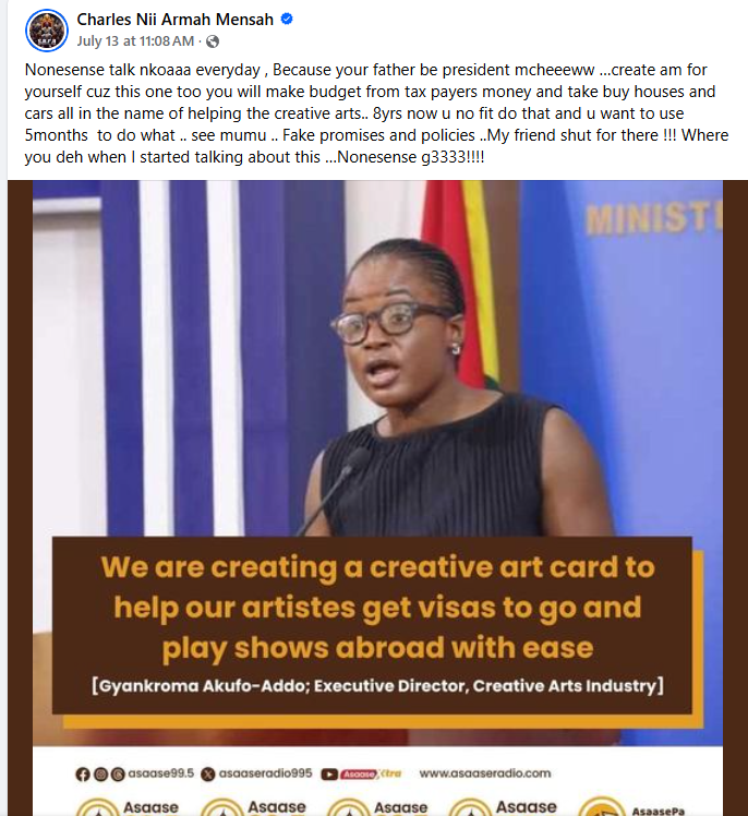 “There’s a God who answers prayer in the twinkling of an eye. The only issue is you are not friends with him, and so you see him so far away. You have now thought to yourself that he is in humans, so you have also put your trust in humans,” the Ote Me Mu hitmaker admonished.