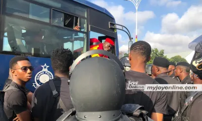 The demonstrators had blocked the road after the Ghana Police Service set up barriers along the route leading to the Jubilee House in an attempt to prevent them from advancing and emphasising their demands.