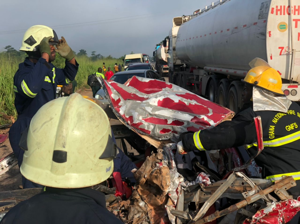 The tanker truck was transporting 36,000 litres of diesel from Accra to Kumasi. Officers from the Ghana Police Service and the Ghana National Fire Service faced significant challenges in clearing the accident scene and extricating trapped bodies from the completely wrecked Toyota Camry.