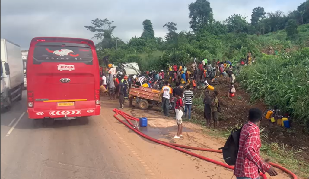 Scores of community members swarmed an accident scene at Ohene-Nkwanta near Konongo on the Accra-Kumasi highway forcefully opening the compartments of a tanker truck and siphoning diesel.