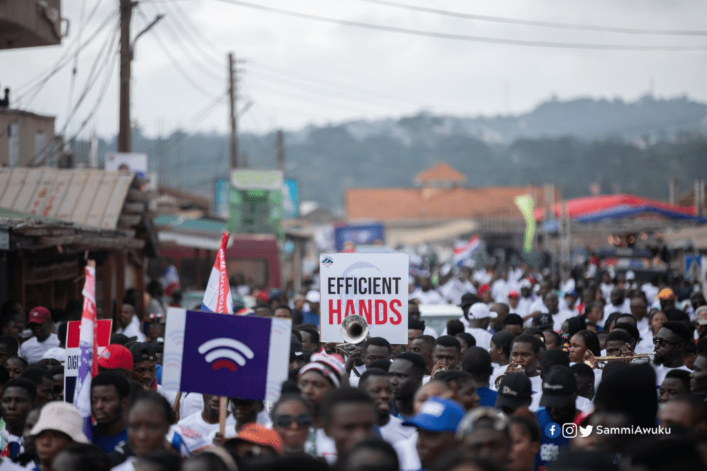 The walk commenced at Amanokrom Park, passing through Mamfi Roundabout and Larte Junction, concluding at Offie High Street in Akropong. Thousands of enthusiastic youth donning T-shirts with “Sammi Awuku” and “Dr. Mahamudu Bawumia” inscriptions displayed unwavering support for Mr. Awuku.