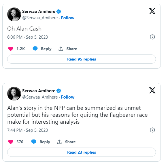 Alan Kyerematen‘s withdrawal from the NPP flagbearership race has sparked significant reactions, including comments from celebrities who have joined the ongoing discussion.