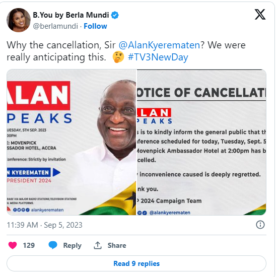 He stated, “We have learned of this news through the media, but we have not officially received communication from a senior party member, Alan Kojo Kyerematen; the party has not yet officially received any communication (regarding his withdrawal).”