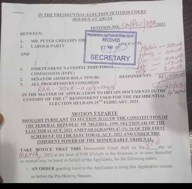 Atiku’s motion was filed on Wednesday, March 1, while Obi’s filed his on Thursday.