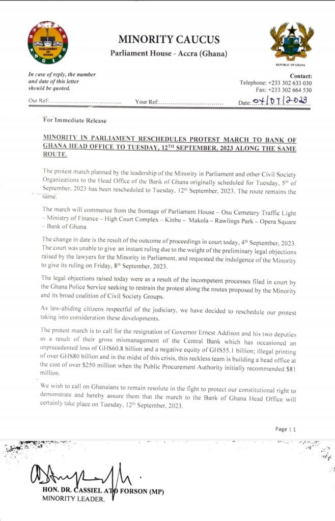The NDC Caucus in Parliament has noted with dismay a press statement from the Bank of Ghana dated 9th August, 2023 which purports to respond to our press conference on the above-subject held on 8th August, 2023.