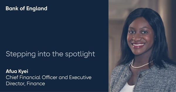 Share some details of her personal journey in an article published on the BoE website, Afua noted that “Growing up, I wanted to be doctor and then decided to read Chemistry here in the UK at Oxford and specialised as an Organic Chemist. My thesis focussed on using organic synthesis to create anti-tumorous molecules that occur in nature.