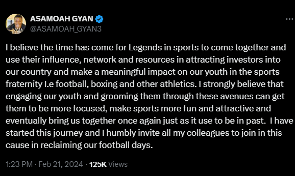 Highlighting the necessity for substantial investment in these sectors, Gyan believes that the collective efforts of sports legends can play a crucial role in not only attracting investors but also bringing Ghana back to its glory days in sports.