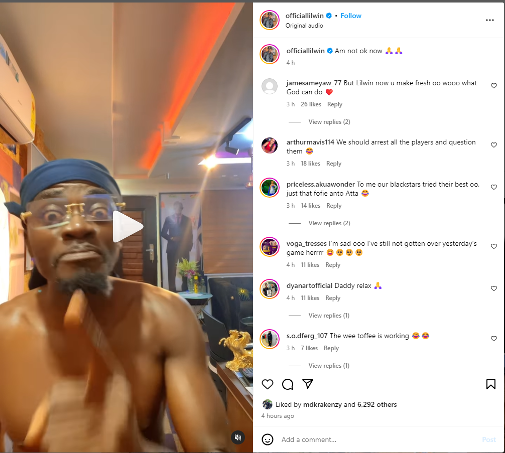 Fentuo is one of the many celebrities who have expressed their discontent and agitation over the Black Stars ‘heart-breaking’ start in the AFCON.