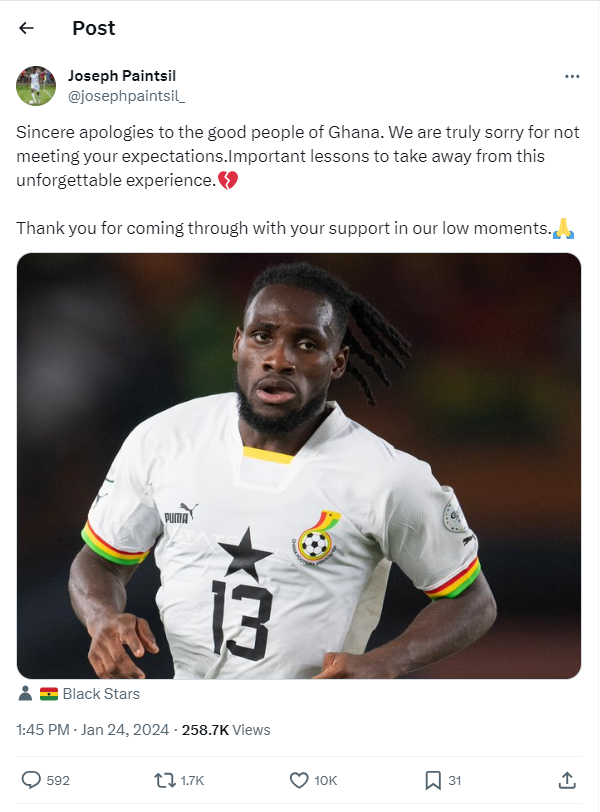 “I hope Ghanaian footballers called to play for the Black Stars recognize that apart from the pride and high honour in representing our nation, taxpayers are making extraordinary sacrifices on the team despite the prevailing economic crisis. The huge financial burden on struggling taxpayers must warrant some respect and utmost commitment from these players,” he wrote.