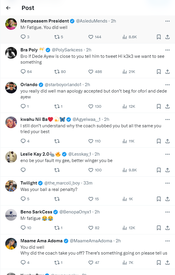 Whereas some netizens, including Ghanaian dancehall artiste Shatta Wale, jabbed the players to change the name Black Stars to Black Soil, others, such as outspoken journalists Fentuo Tahiru Fentuo, fumed at Black Stars coach Chris Hughton for what he describes as “poor selection, substitutions and overall poor game management.”.