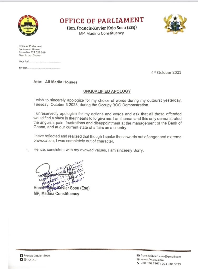 The letter, signed by Minority leader Dr. Cassiel Ato Forson, urges Dr. Addison to communicate his availability by Monday, 18 December 2023, ensuring a proper and direct transfer of their concerns.