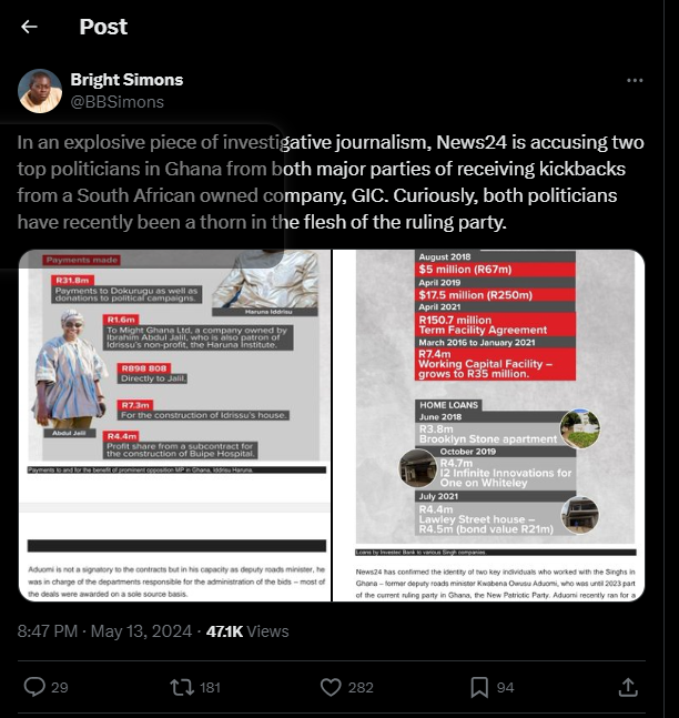 Executive Director for Africa Centre for Energy Policy (ACEP), Ben Boakye, disclosed this information, citing Bright Simons’ lawyers as his source.