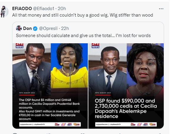 On October 16, 2023, the OSP lifted the freeze on five of Dapaah’s bank accounts but maintained the freezing order on her other bank accounts and financial assets.