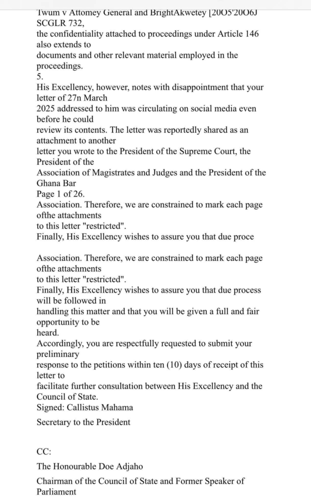 This was contained in a letter dated January 26, 2026 by the Chief Justice to President John Dramani Mahama. According to the Chief Justice