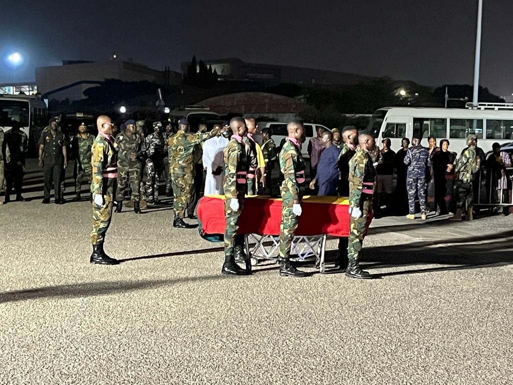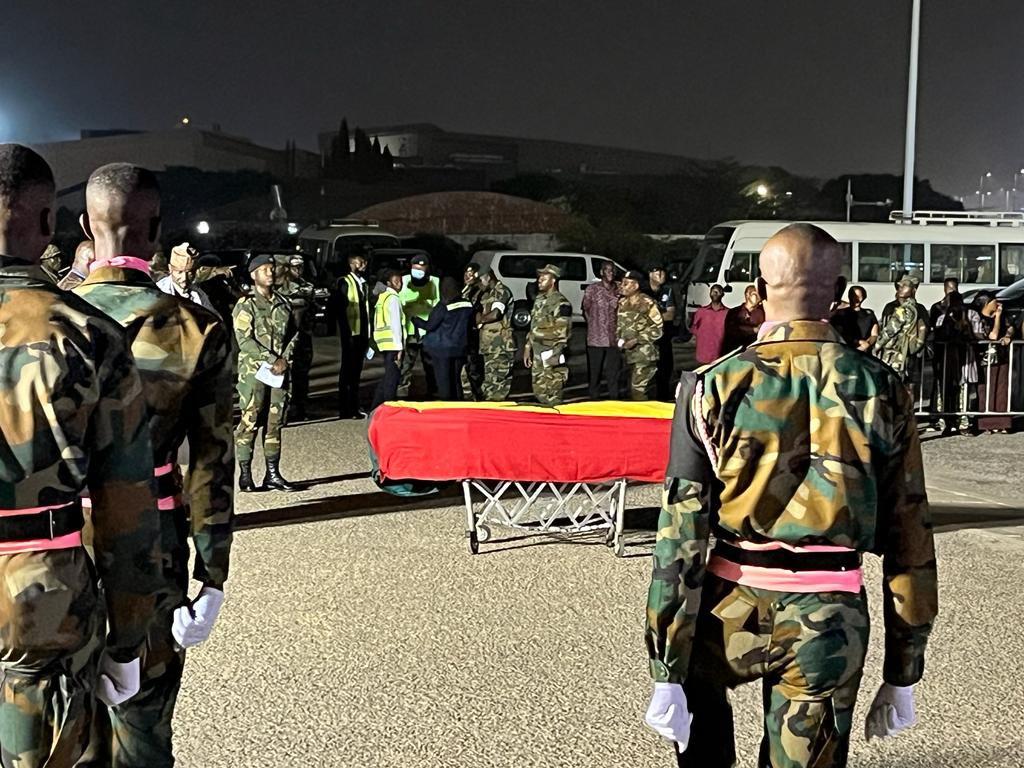 His mortal remains arrived at the Kotaka International Airport on Sunday, February 19, 2023.