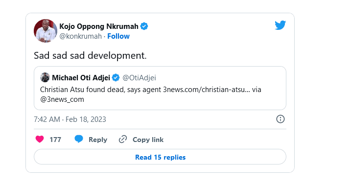 They in turn, turned to social media to extend their condolence and mourn the former Black Stars player.