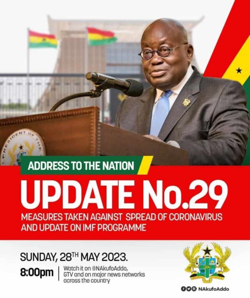 Address By The President Of The Republic, Nana Addo Dankwa Akufo-Addo, On Updates To Ghana’s Enhanced Response To The Coronavirus Pandemic, On Sunday, 28th May 2023