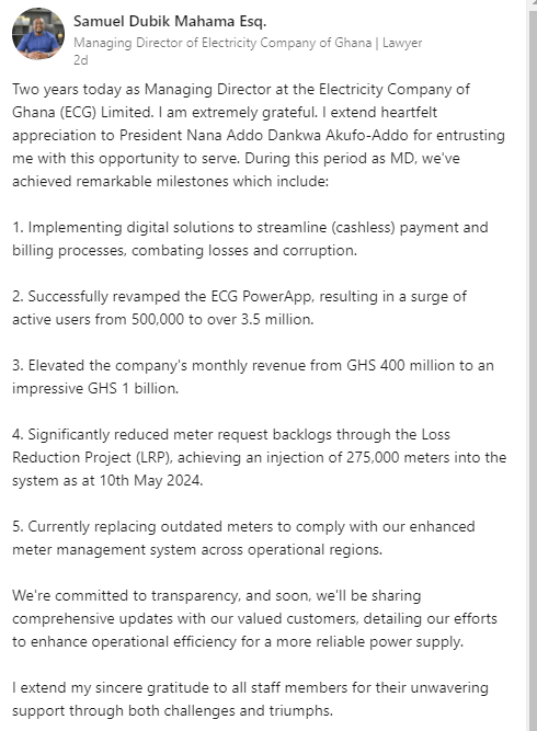 In response to the concerns, ECG Managing Director Samuel Dubik Mahama stated that the issue may be due to expired meters.
