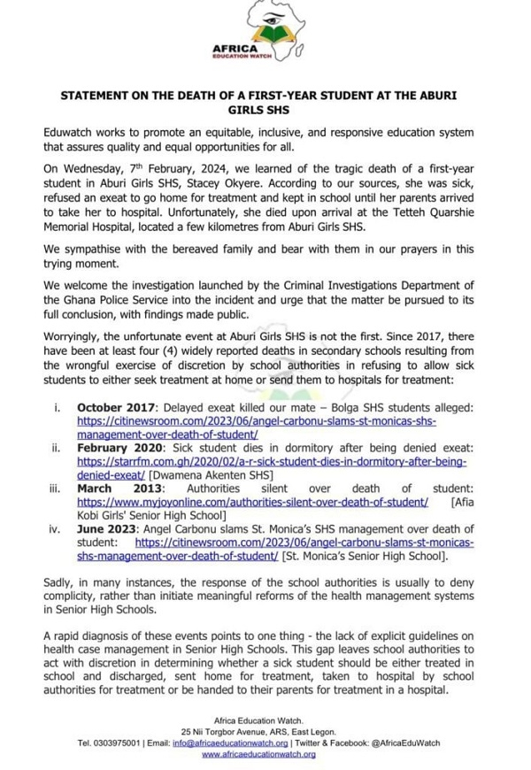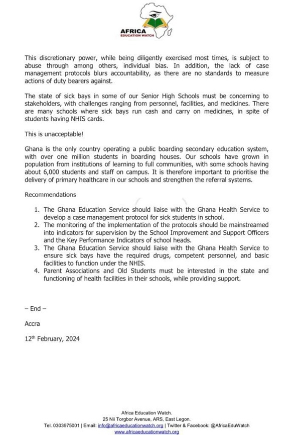 Eduwatch also urged the Director-General of the Ghana Education Service (GES) to intervene immediately and ensure that no pupil is barred from sitting exams over unpaid fees.