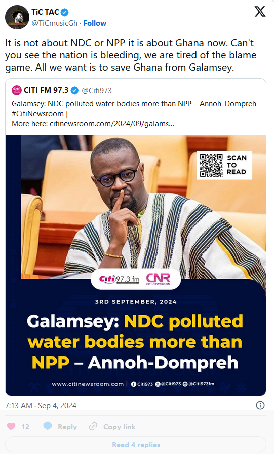 Boafo emphasized that such remarks divert attention from the pressing national issue of illegal mining, also known as “galamsey,” which continues to devastate the country’s natural resources. He highlighted the need for leaders to focus on addressing the environmental crisis rather than engaging in partisan blame games.