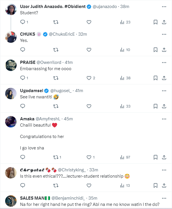 The viral video, now trending on Twitter as X, depicts the lecturer kneeling with a ring in hand, passionately asking the girl to be his wife.