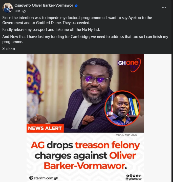 Sory’s post comes after Dame’s engagement with the media where he allegedly accused the National Democratic Congress (NDC) of driving an agenda for the removal of the Chief Justice, especially through the petitioners’ lawyers Oliver Barker-Vormawor, Thaddeus Sory and Tsatsu Tsikata.