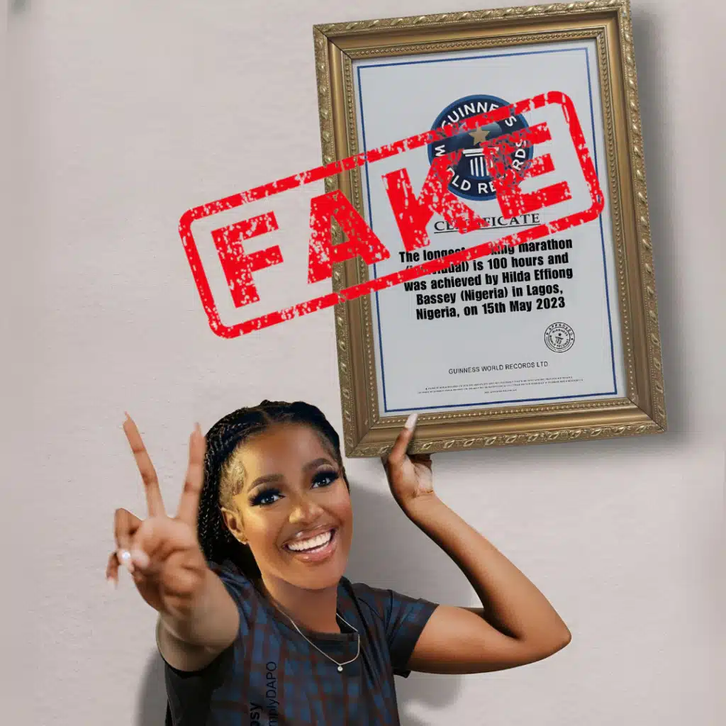 A photo of Nigerian chef Hilda Baci allegedly holding a certificate from the Guinness World Records is doctored.