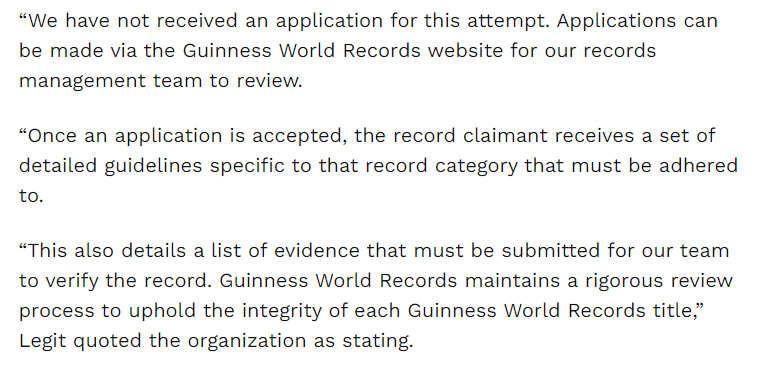 According to the British reference body, one of its spokespersons said they “are looking forward to receiving the evidence for its Records Management Team to review before we can confirm the record is official.”