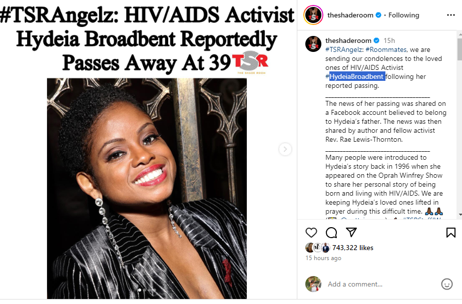 Hydeia Broadbent, a prominent advocate for HIV awareness who bravely shared her journey of living with the virus from a young age, passed away at her residence in Las Vegas on Tuesday. She was 39 years old.