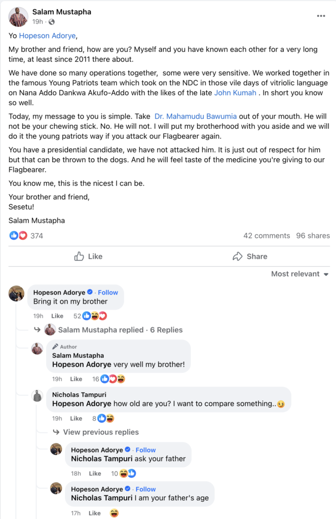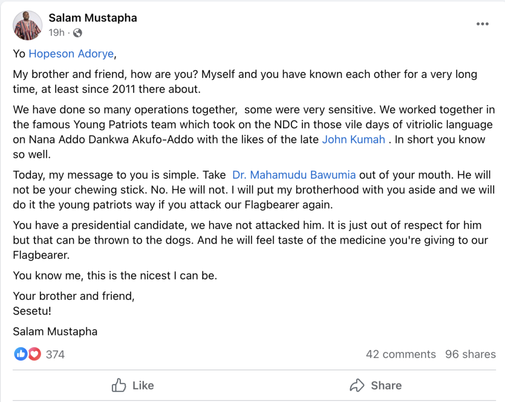Mr Adorye, per the writ of summons, is quoted to have said,” Look, have you seen this document? It is called Agyapadeɛ. Do you see it? Please capture it well so that everyone can have a look at it. I am not saying anything just from my head. It is alleged that a particular family wrote this Document (Agyapadeɛ). How they can amass the wealth and property of Ghana for themselves, their sons and generations to come.