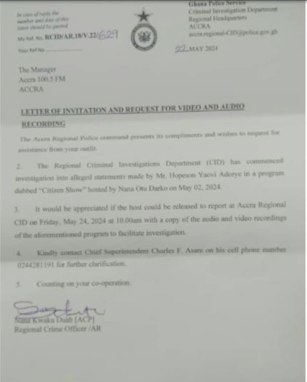 On the said show, Mr Ofori Atta says Mr Adoye was “given the unfettered and unrestrained opportunity and indeed was encouraged to run an unjustified commentary on a document titled “Agyapade3” in relation to the himself, the entire membership of Ofori Panin Fie and Okyeman.”