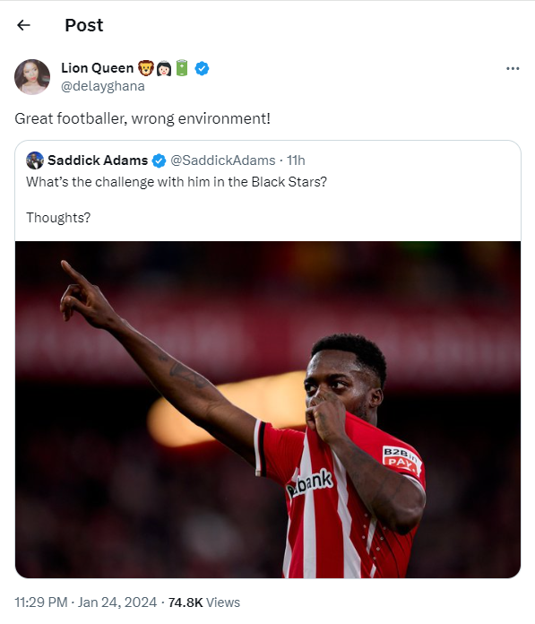 Williams, who missed Ghana’s final two qualifiers against the Central African Republic and Comoros due to injury, has scored just two goals in 25 appearances since switching allegiance from Spain in 2022.
