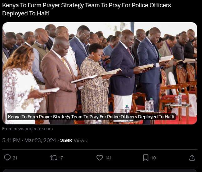 “We cannot allow our police to go to Haiti without prayer. We had pastors from Haiti and America, and we are seeing how these three countries can come together to pray because we believe with prayer everything is possible,” First Lady Mama Rachel Ruto stated.