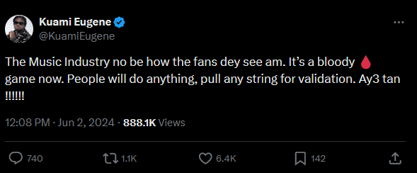 Okyeame Kwame shared, “I was 39 and turning 40 years. I had written an article on my fear of the big four zero, and almost everything that I feared…that I will lose my audience share, and then I’m going to be old, my ideas will be old.