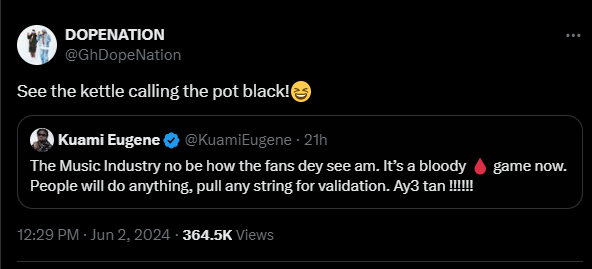 The ‘Biibi Besi’ hitmaker in an interview on Aluta FM, is somewhat alleging that Kwami Eugene sold his songs to a political party of which he interprets as an attempt by the “Angela” hitmaker to dwindle his music career.