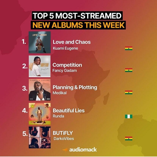 Nigerian artist Runda’s ‘Beautiful Lies’ and Darkovibes’ ‘BUTiFLY’ albums rounded out the top five in fourth and fifth positions, respectively.