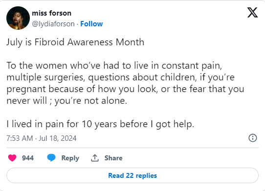 The ‘Scorned’ star opened up about the often overlooked pain many women endure, encouraging them to seek medical help. “July is Fibroid Awareness Month. To the women living in constant pain, undergoing multiple surgeries, facing questions about children or being mistaken for being pregnant due to fibroids, you’re not alone,” Forson wrote. “I endured pain for 10 years before getting help.”