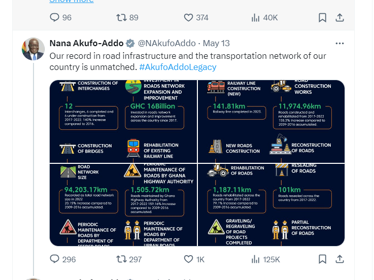 Since taking office in 2017, his government has completed over 12,830 kilometers of road and constructed six interchanges, achievements he contrasts with those of the previous administration.