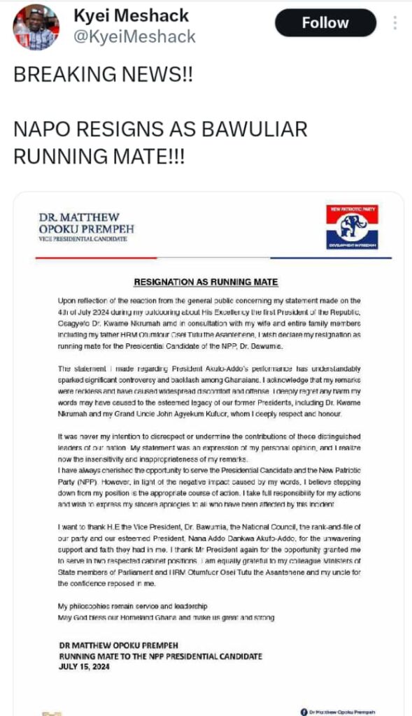 This pivotal move influenced Bawumia’s decision to choose NAPO as his running mate.