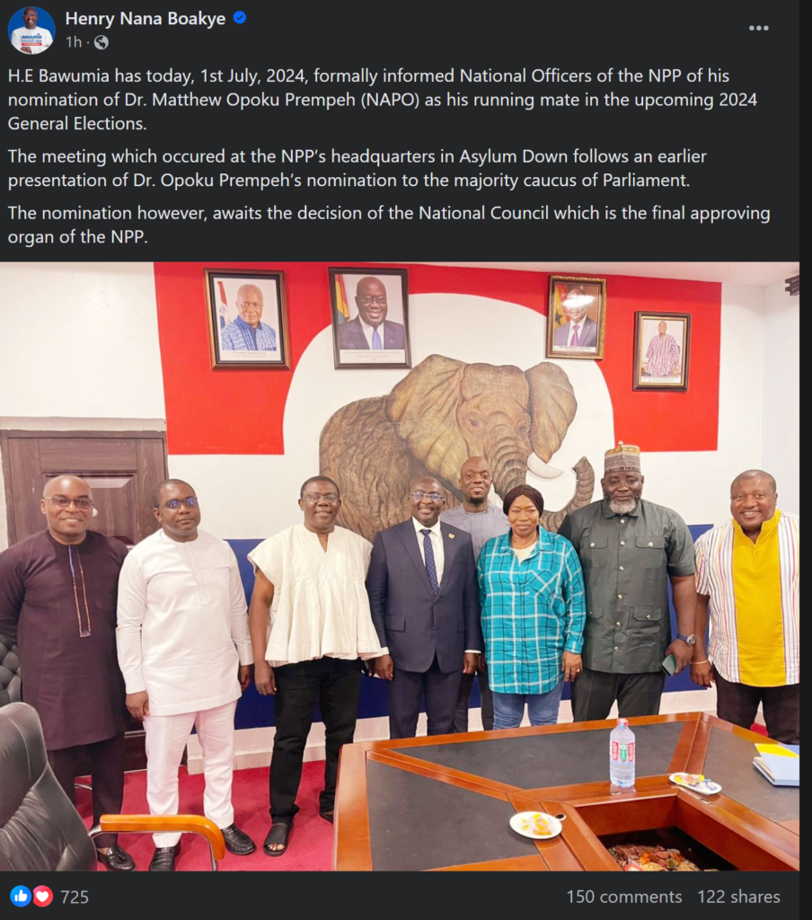 Prior to the meeting, several names were speculated as potential running mates, but Dr. Opoku Prempeh, the current Member of Parliament for Manhyia South, emerged as the favored candidate.