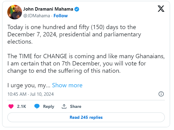 Meanwhile, a new poll by Global InfoAnalytics has predicted Baba Jamal to secure about 75% of the votes ahead of his main contender, Baba Ali of the New Patriotic Party (NPP).