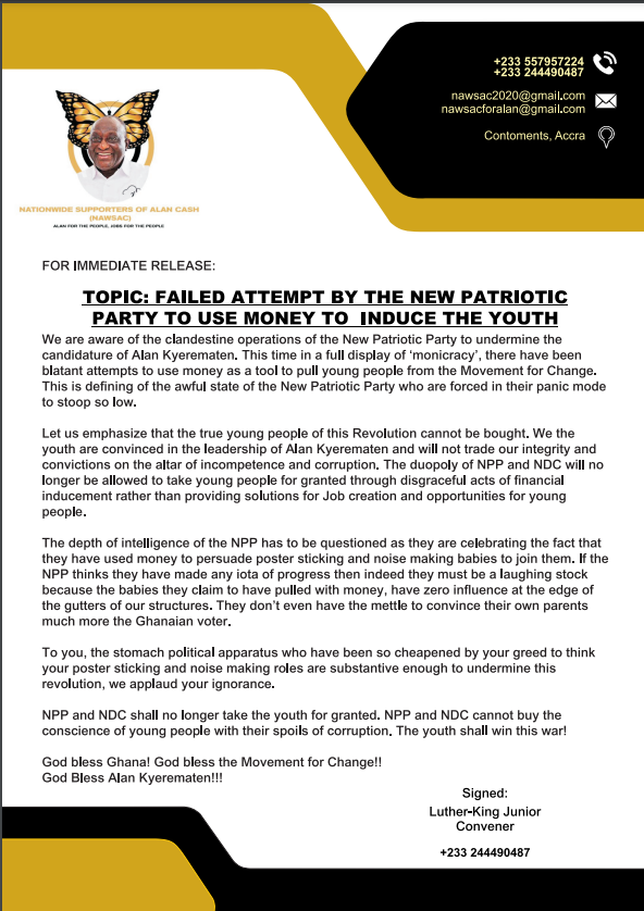 We want to further tell Hon. Agyekum and his NDC hooldlums that ‘ntasu kokoo wo obiaa anum na 3nso y3 gyae te fufuo’. No one holds a monopoly on violence, but we have decided to be law-abiding citizens. Let him never think he can get his way out with violence at all times; there will definitely be a day of accountability for him and his hooligans.