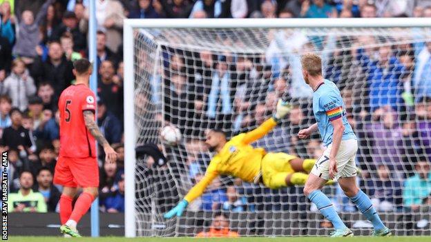 His second goal came when he latched onto a precise De Bruyne throughball, marking the eighth time the Belgium international has teed up a Haaland strike in the top flight this term.