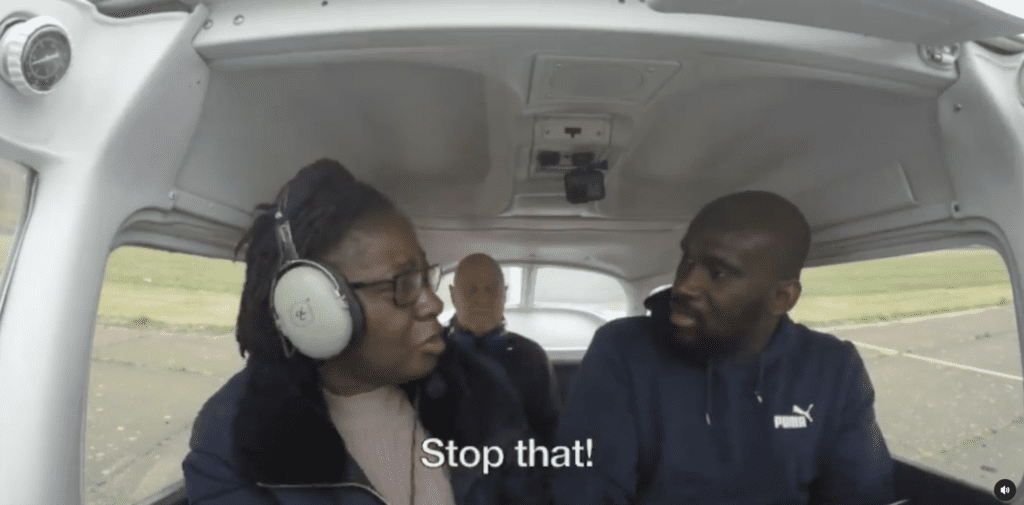 As they touch down safely, Kwesi’s mum takes out her phone and records her son piloting the plane, with a big smile on her face. She says, “that’s my sneaky boy.”