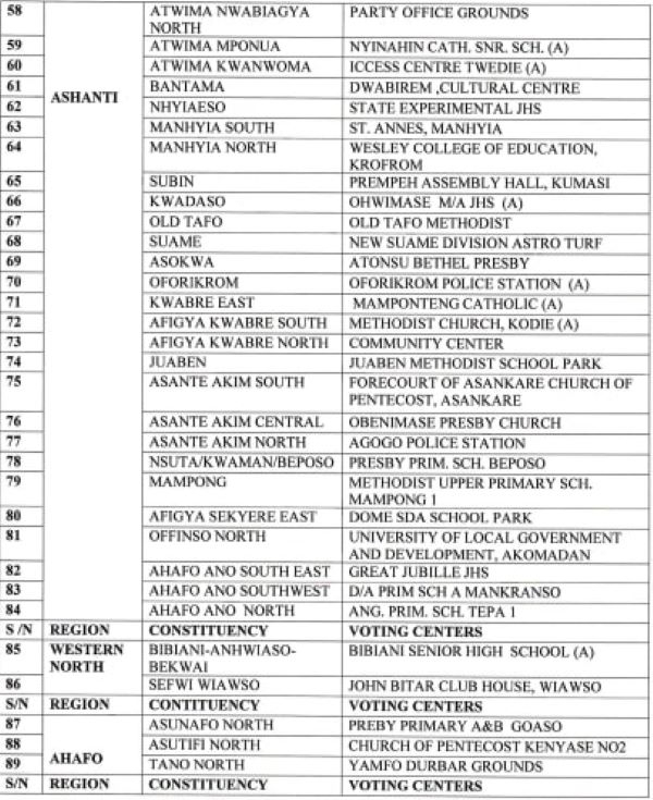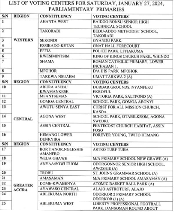 The statement, signed by Justin Kodua Frimpong, included a detailed list of the approved centers where the forthcoming primaries will be conducted.