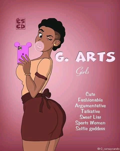 In fact, General Arts girls are the cutest.They are very fashionable.They always behave like “Slay Queens”.They are argumentative and talkatives. They are sweet liars. They are sports women and selfie goddess.